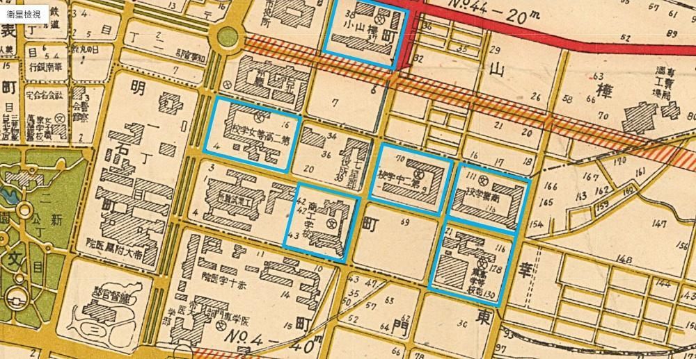 圖為1939 台北市區計畫街路並公園圖 (來源:中研院 台北市百年歷史地圖)