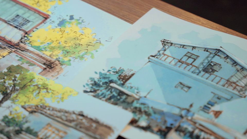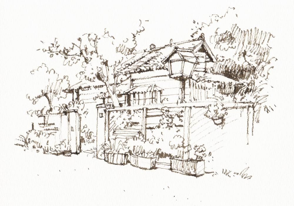 橘枳繪製的老屋寫生手稿